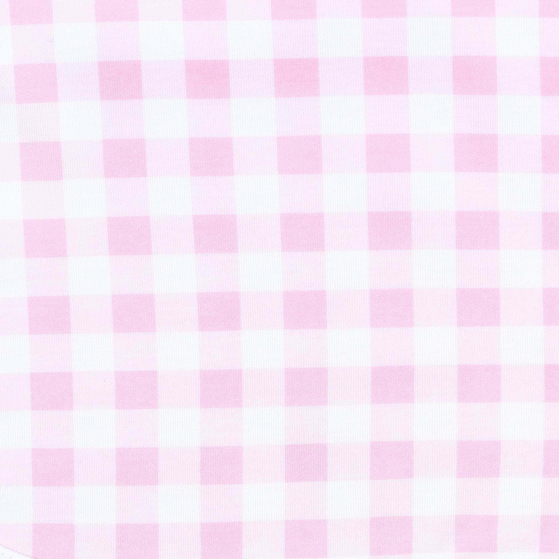 • Printed Check Fabric: Timeless pink check pattern adds style.