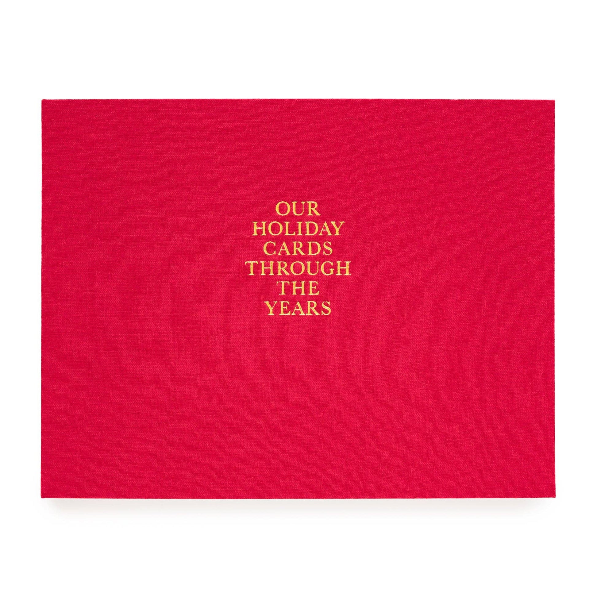 Featuring a rich holiday red fabric-bound cover with refined gold detailing, this heirloom piece brings warmth and sophistication to your seasonal décor. The spacious blank pages allow you to arrange and display cards with ease, while the included adhesive strips make it simple to secure each memory.